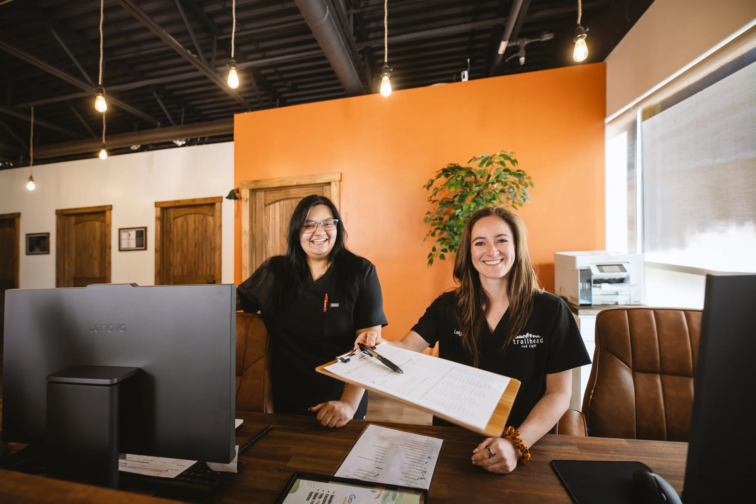 Cuando llega por primera vez a Trailhead Chiropractic, se le da la bienvenida y se le da el papeleo necesario si aún no lo ah completado en persona oh por correo electronico. El papeleo suele tardar entre 15 a 20 minutos.